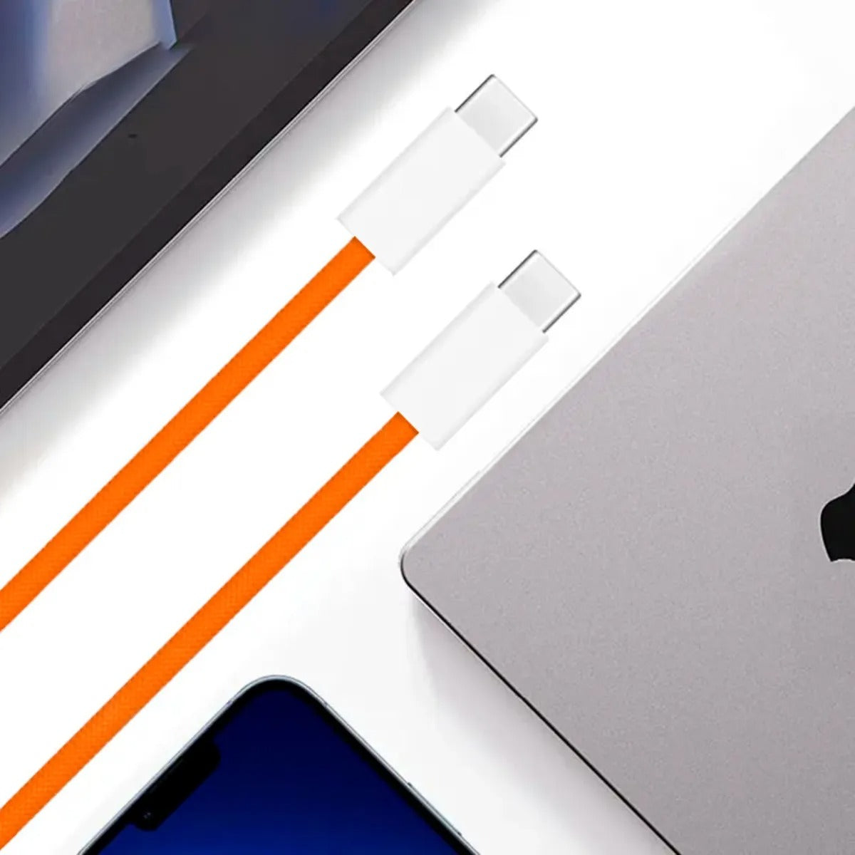 🧡 Cable Trenzado Reforzado USB-C: Durabilidad y estilo. El cable en color naranja tiene una cubierta trenzada para resistir torceduras y el desgaste diario, evitando cortes y daños.
