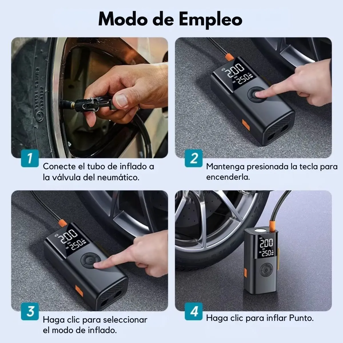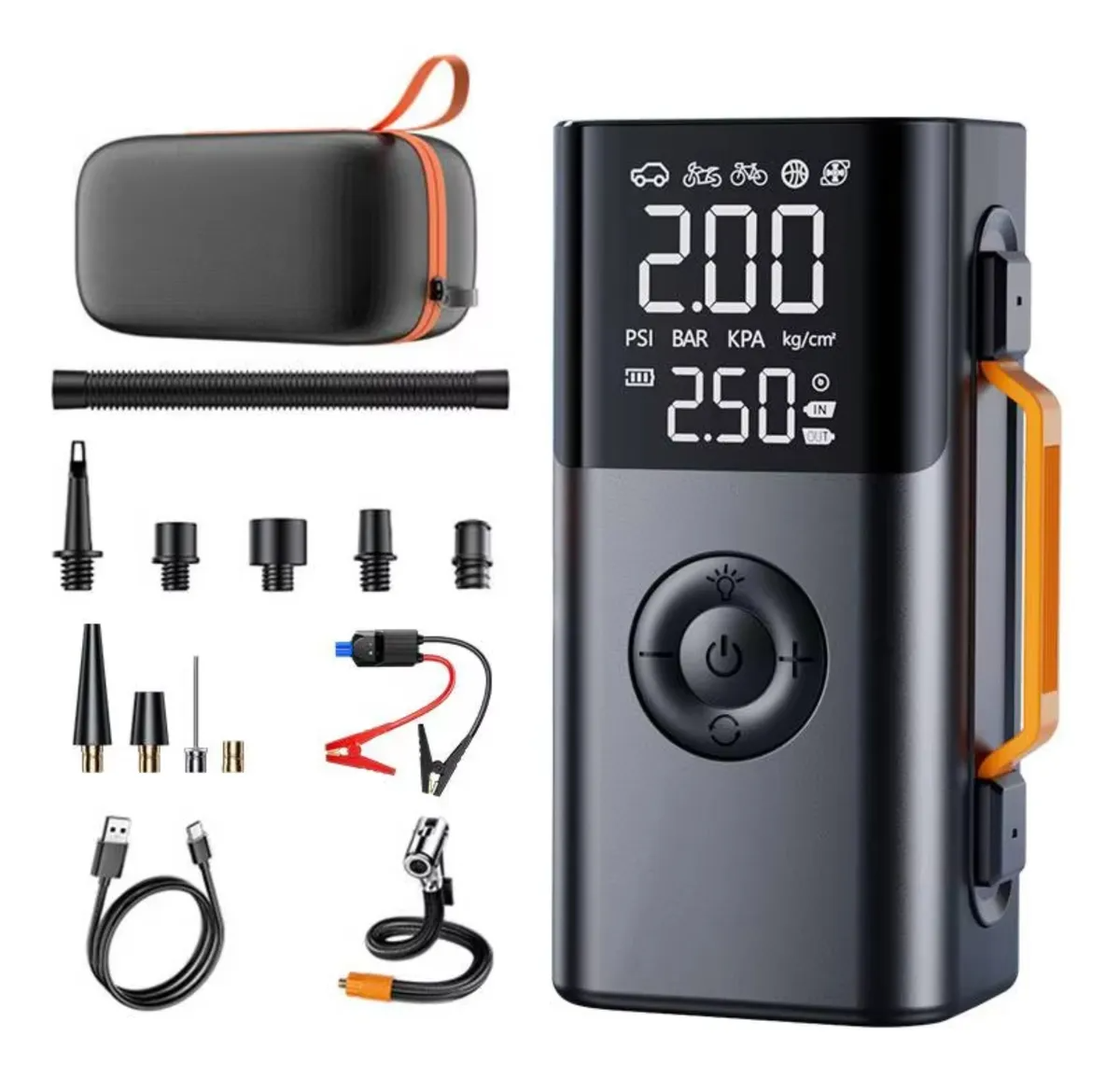 🚴🏻♀️ Bomba de Aire Digital de Alta Velocidad: Incluye un compresor digital integrado con pantalla LED. Infle neumáticos de coche, bicicletas, motos, colchonetas o pelotas de forma rápida y precisa.