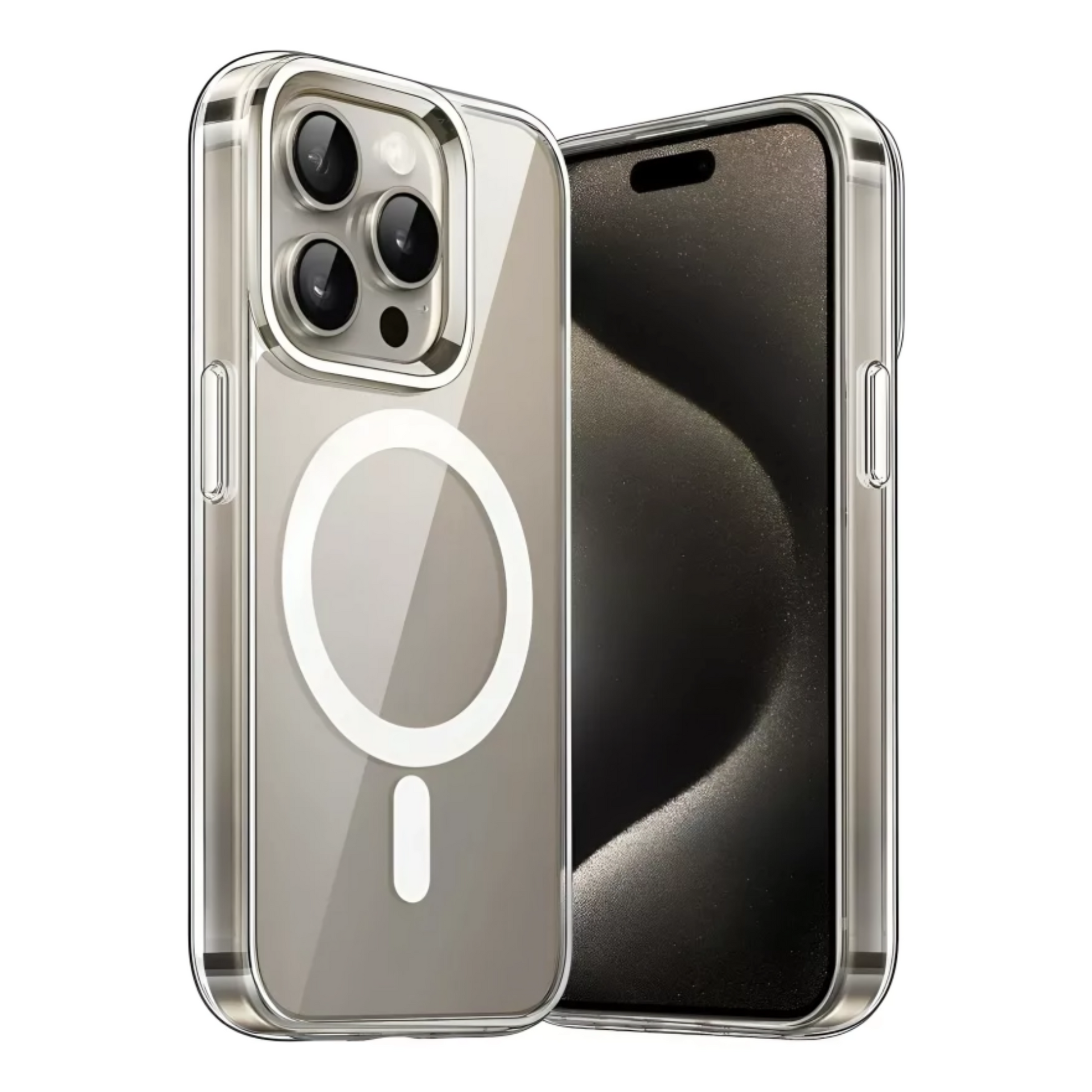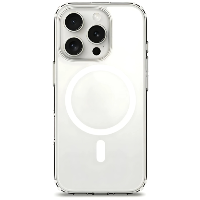 Sus bordes elevados protegen pantalla y cámara, mientras su diseño delgado mantiene la funcionalidad perfecta con accesorios magnéticos.